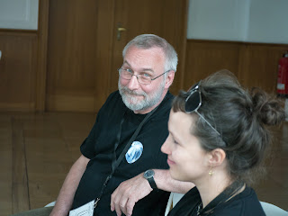 Felix Mertikat und Verena Klinke berichteten von der Schöpfung ihrer Welt, beginnend bei „Opus Anima“, einem Rollenspielbuch, das zu einem gewissen Teil die Basis für Steam Noir bildete, das dann aber doch etwas eigenes darstellt. Sie zeigten den Schaffungsprozess ihres Comics, sprachen über die Zusammenarbeit von Autorin und Künstler und berichteten über zukünftige Projekte, denn nach der Veröffentlichung des 4. Kupferherz-Bandes wird diese Geschichte vorerst abgeschlossen sein. Es werden noch kurze Geschichten folgen, die zeitlich vor der Handlung von „Das Kupferherz“ angesiedelt sind und gegen Ende des Jahres ist der Beginn eines ganz neuen Projekts mit dem Titel „Carnival“ geplant. Dort liegen die Städte in einer riesigen Wüste zu weit auseinander, um einfach miteinander in Kontakt zu stehen. Eine riesige Karawane reist innerhalb eine Jahres durch sämtliche Regionen der Wüste, immer in Begleitung eines Zirkus – vermutlich dem Carnival. Die Hauptcharaktere reisen, freiwillig Er und ihm folgend Sie, mit besagtem Zirkus durch das Land. Das ganze Projekt soll offen beobachtbar gestaltet sein, d.h. der Leser kann den Schaffungsprozess mitverfolgen, allerdings nicht eingreifen.![]() |